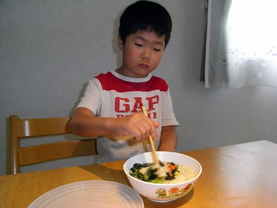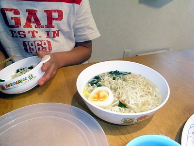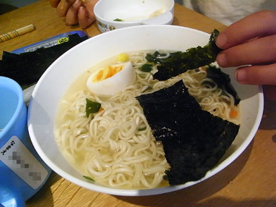 更に海苔を浮かべると、ラーメンらしくなる。 いや、本当のラーメンなのだが。 |