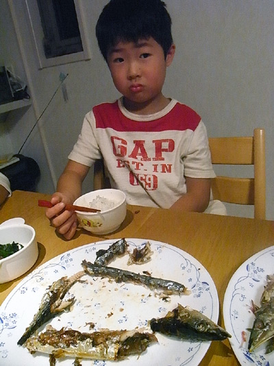 夜はサンマ、1匹。 小骨は非常に嫌っていたが、 身を解すのはいとわない。 |