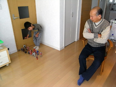 相変わらず並べ好きのS。 この後ジジ様と、 ウルトラマンボーリング大会が始まった。 |