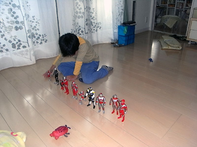 が、Sがジッとしているはずもなく。 ホンの僅かの休息で、再び活発に整列作業開始。 |