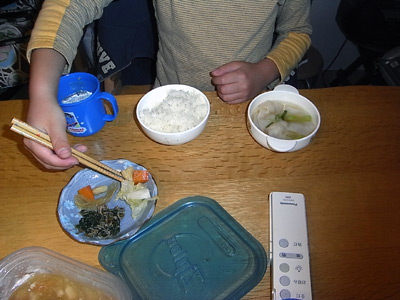 夕食はここ数日のヘビーなソレを鑑み、総菜セット。 普通子供の苦手な内容だが、初めてSも完食した。 |
