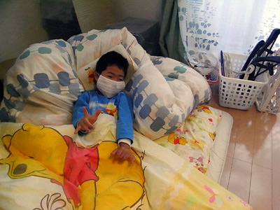 本当は布団の中でゆっくりさせたかったのだが、