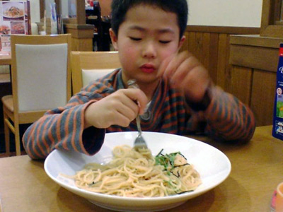 夕食は、初の大人用パスタ。 |