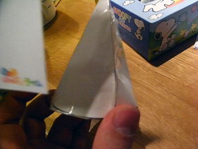 糊しろが無いのに気が付いて、 セロテープを持って来るまでにずいぶんかかった。 |