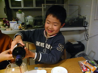 なら、おママにもついでくれ。 パシリ根性全開、ニコニコのS。 |