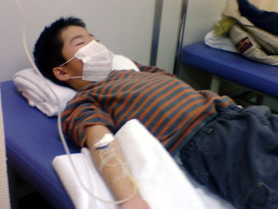 抗ウイルス剤を処方して頂き、脱水対策として点滴を入れて頂く。