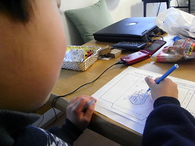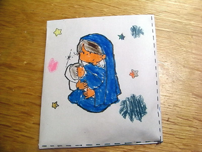 献金袋に色を塗る。 |