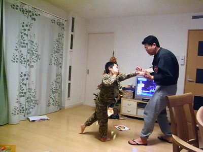 汗をかかないように、 体力を使わないように、形だけ。 でも、おママに見てもらうと、 張り切りすぎてフォームが崩れる。 |