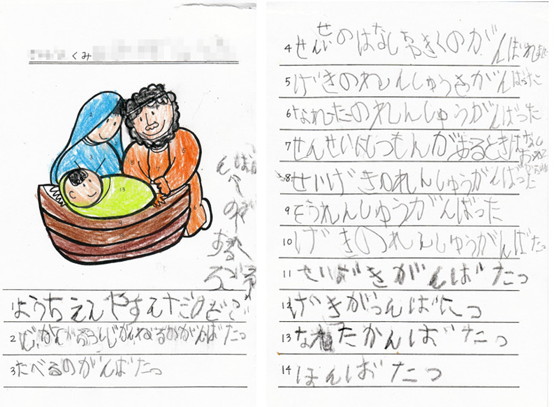 カウントダウン、聖劇までの14日間、一カ所ずつ絵に色を塗り、努力を書き込む。