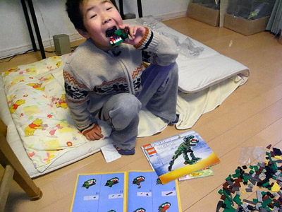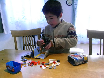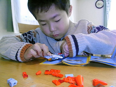 できた! さすが7-12才用、 誤って取り付けると外すのが大変。 また気が付かずに作り込むと、修正は余計難しい。 時々間違えるので、おママは気が抜けなかったとか。 |