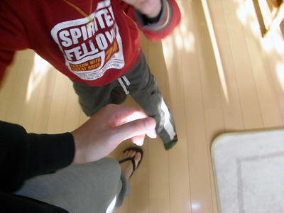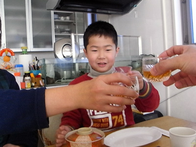 乾杯。 去年は吐きそうになったのを覚えているのか、 全く口をつけなかった。 |
