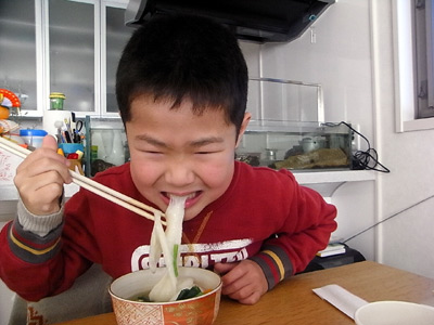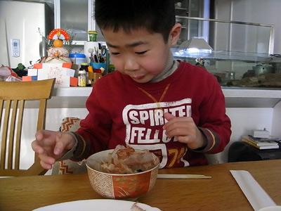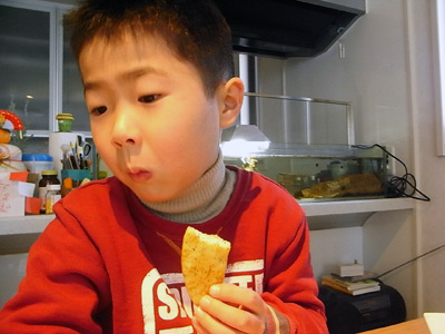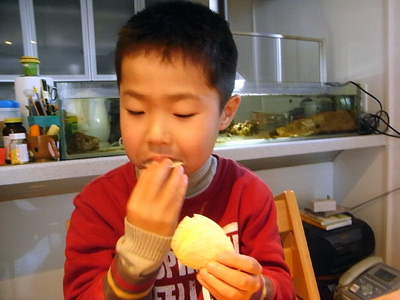 果敢に挑むS。 余り好きでないようで、殆ど食べなかった。 |