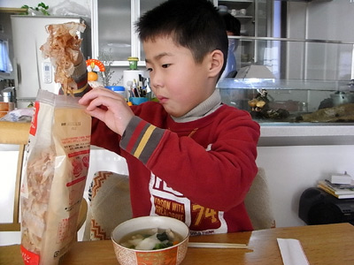 もちろん、雑煮にも大量カツオ節。 |
