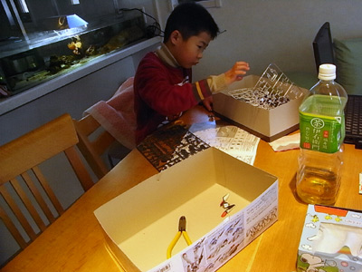 帰宅後、寸暇を惜しんでプラモ作り。 思ったよりできているが、 かなりの部分でつっかえる。 どうする?手助けするか? |