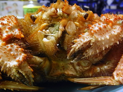 Sが寝静まったあとの、 自分たちへのご褒美。 こういう時は、贅沢にいくぜ。 口元が怪我してる、毛ガニさん。 ナニゲにタラバやズワイより旨いと思う。 |