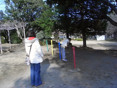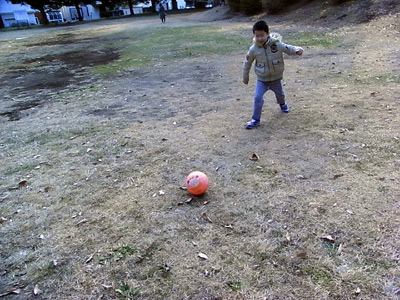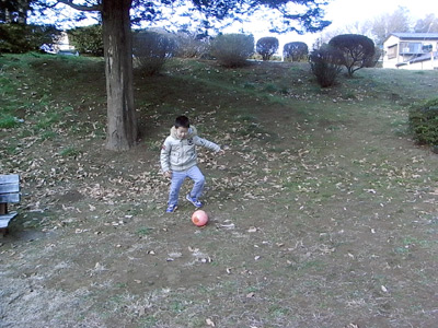 そりゃ上手いわけではない。 でもボールを蹴って樹に当てる、 守るのゲームができるようになった。 |