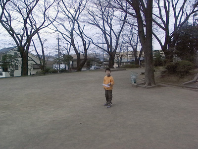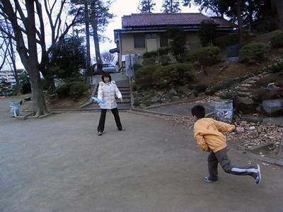 正月飾りをお焚き上げしてもらうため、神社に。 せっかくなので、外遊びセットを持って来た。 |