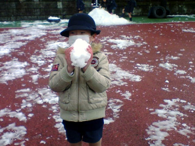 園庭解放はない日であるが、雪合戦が勃発するのは当然の流れ。