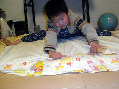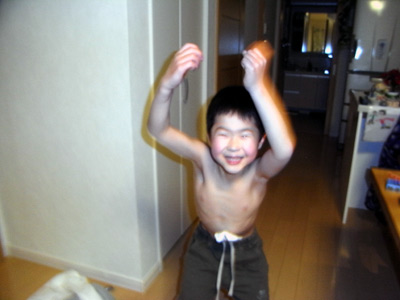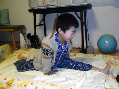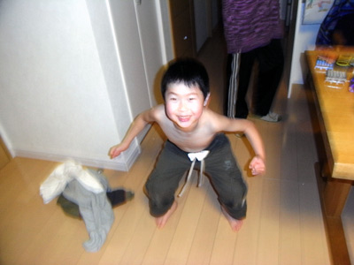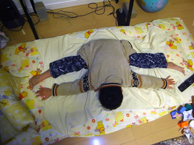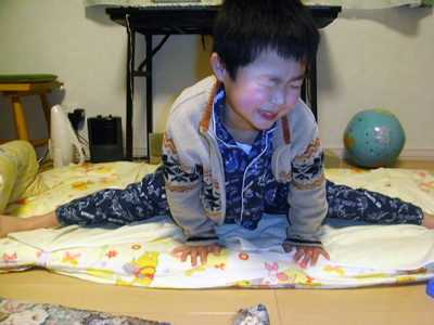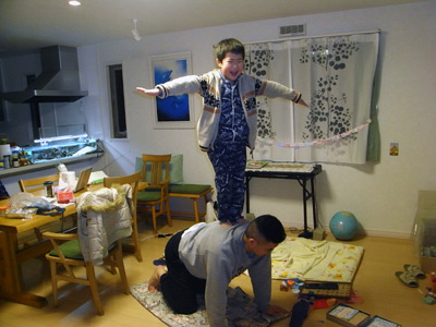 昨日できなかった、ピラミッド立ち。 ヤーッ!! ついに背中に立つことができた。 僅かずつだが、またできることが増えてきた。 |