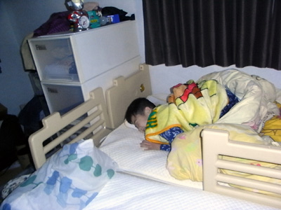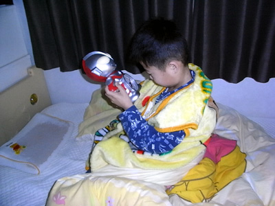 朝、興奮してウルトラ目覚ましが鳴る前に起きたS。 |