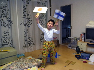 きっと子供達が喜ぶだろうと、園児が生活発表会で演じていた国の国旗を作り、