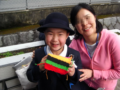 毛糸のポシェットに・・・。 |