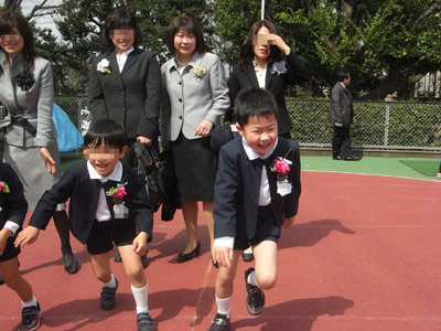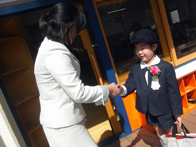 外でクラス毎に記念撮影し、園児たちは再びそれぞれのクラスに戻り、帰宅準備。