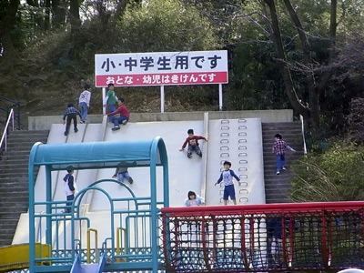 滑り台も、掴まってスピードをセーブ。 |