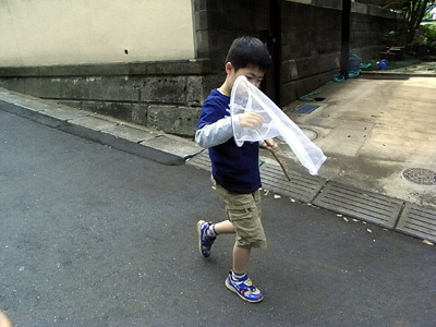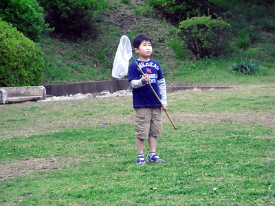 蝶が止まるまで、執念深く追いかけて、 ついに捕まえてしまった。 しかし動かなかったので、 死んじゃったと思って・・・。 |