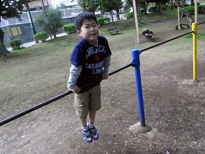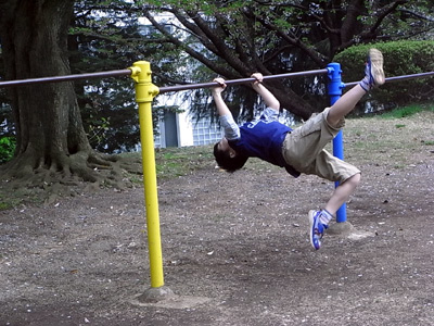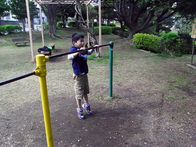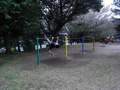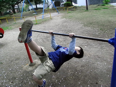 真ん中でも同程度に惜しい逆上がり。 だったら、ホントはもっとできるんじゃねーか? |