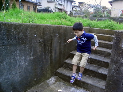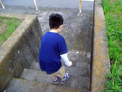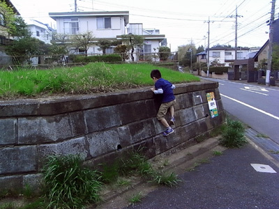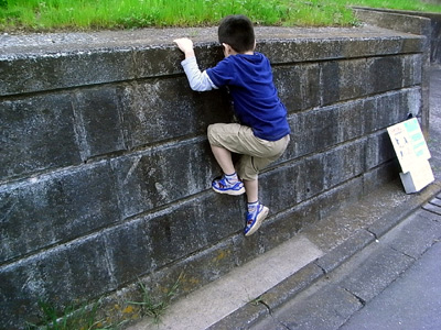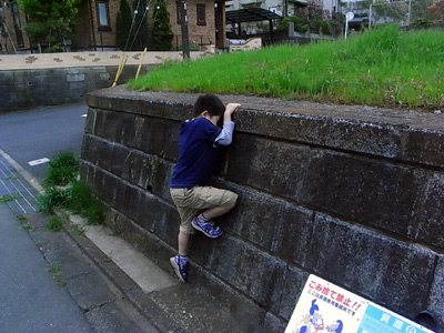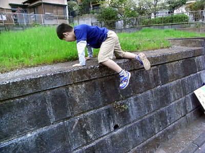 よじ登りに挑戦。 悲しいくらいに情けない動き。 |