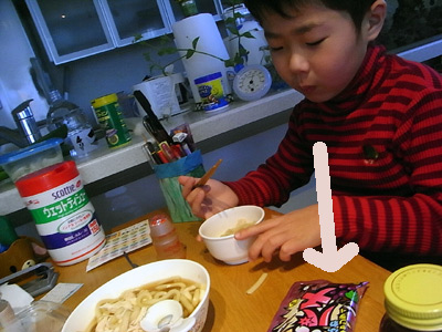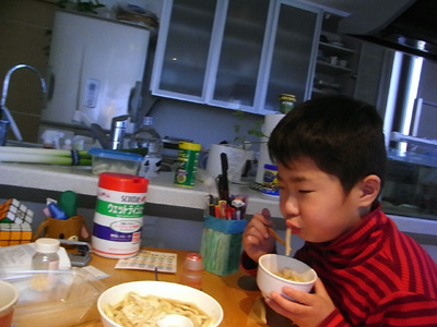 昼食は、素うどん。 |