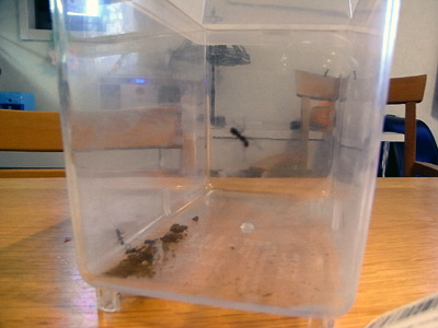 動きの速いアリを小さなアリセットに入れるのは本当に一苦労だった。