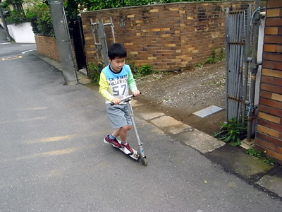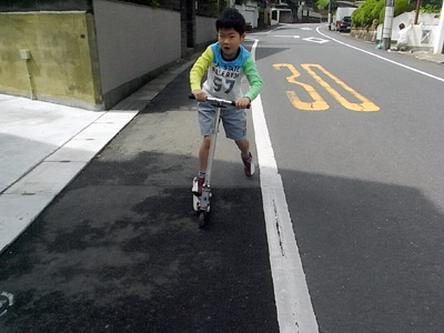 このキックボードを頂いてすぐに発熱嘔吐、実はこれが初の路上教習である。