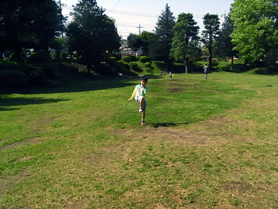 途中公園でフリスビー。 |