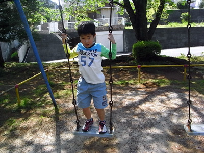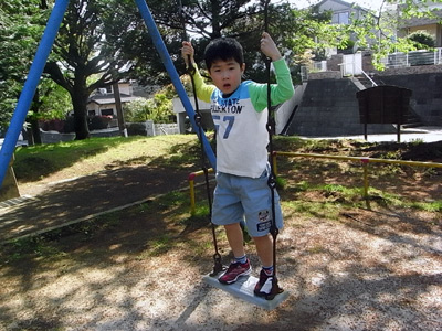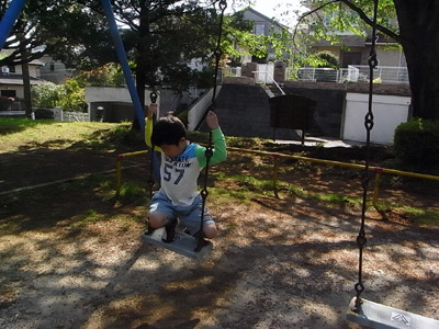 さて、そろそろ買い物に行こうよ・・・というのに、ブランコをやりだすS。