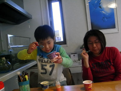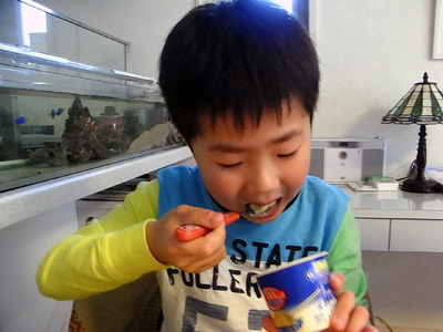 家に帰るやいなや、アイスクリームに手を伸ばすS。 |