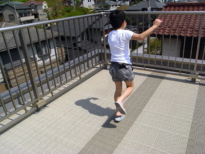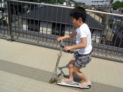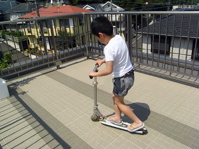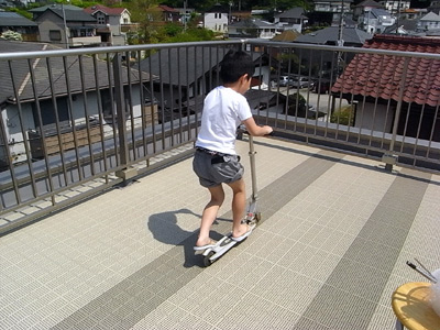 床に細かな凹凸もあって乗りにくいのだが、 それでもちゃんと乗っている。 |