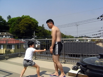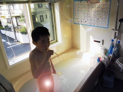 疲れたのだろう、夕方にはウダウダになり、 風呂場シャボン玉で手を打った。 |
