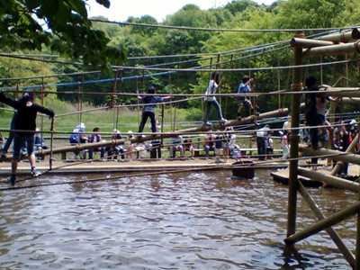 実はここ、ほぼ全てで地上数mの強烈コースばかり。 モチロン安全ネットや命綱など一切なし。 落下すれば良くて水没、地面だと・・・? どう考えてもSには場違いだろう。 |