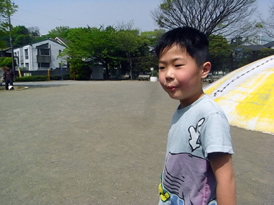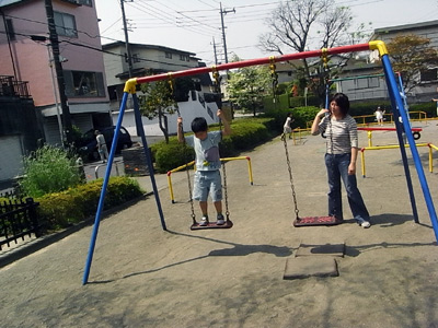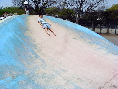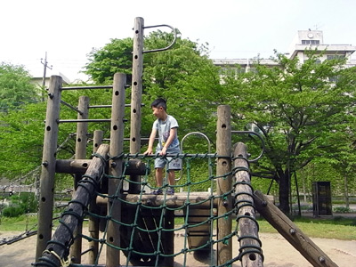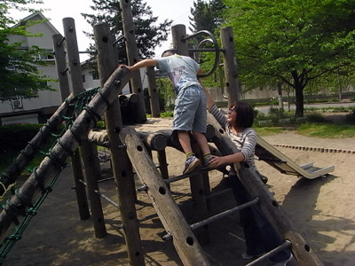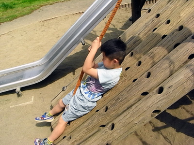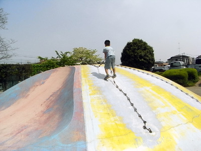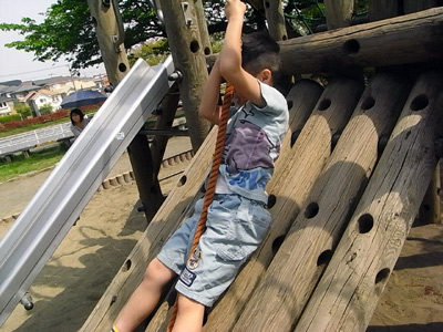 一方、足場が揺れないコンクリートのこの遊具は、 一切怖がらなくなった。 |