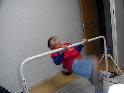 昨日運動塾ではできなかった引きつけぶら下がりも、アゴぐらいで耐えられるようになっている。