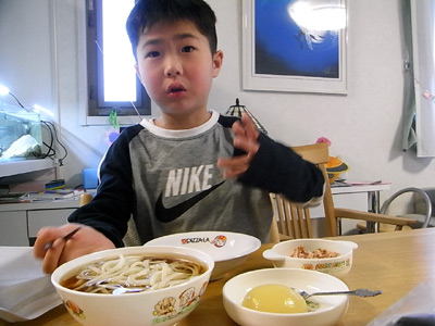 夕食もここのところ毎度、脂肪が少なく消化の易しいうどんである。