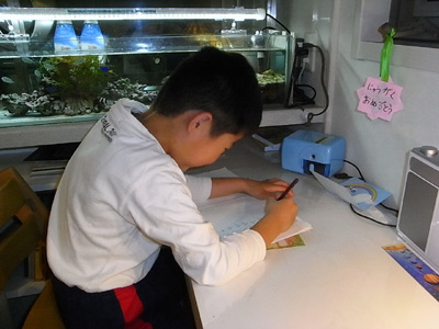 眠いので、得意の「お」の字もミミズ這い。 |