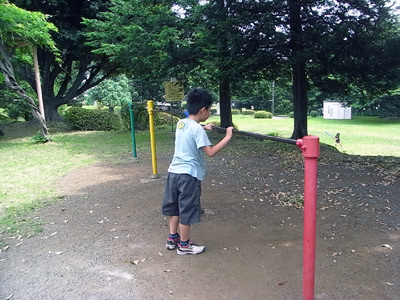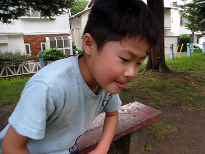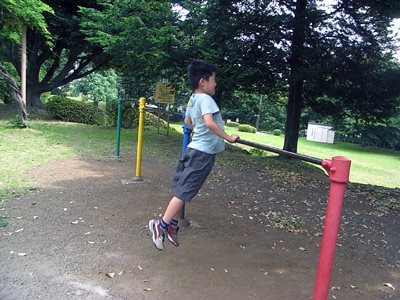 ブランコをやるも、今日は立ち乗りが嫌だという。