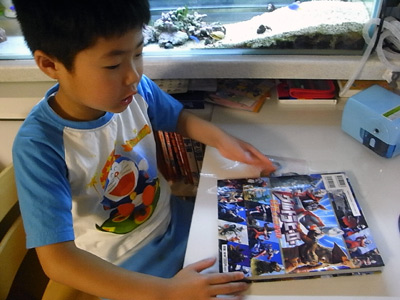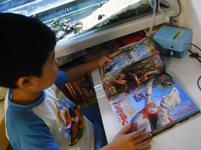 勉強が終わり、お気に入りのウルトラマン本。 |