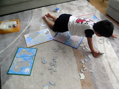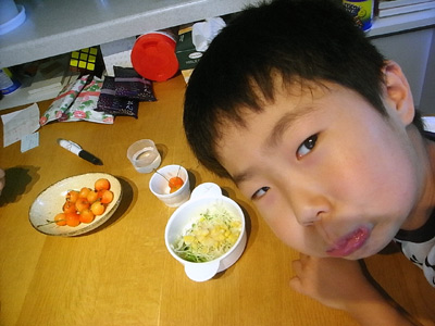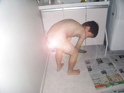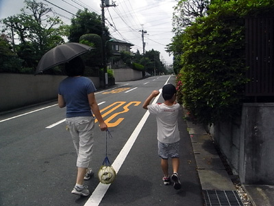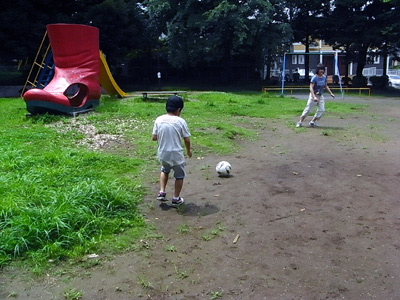 大好きなサッカー遊び、おママとの連合軍。 雨でぬかるんでたので、Sも泥の汗をかいていた。 |