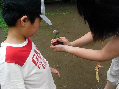 バッタを掴まえたおママ。 ナゼかS、 それをすぐさま草むらに逃がしていた。 |