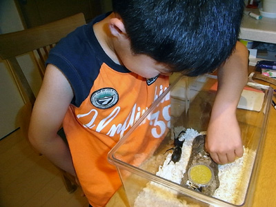 夜、私が帰宅するやいなや、カブトと遊びたいとS。