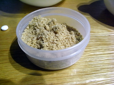晩の薬、Sが勝手に砂糖を増量。 黄粉餅じゃないんだから。 |
